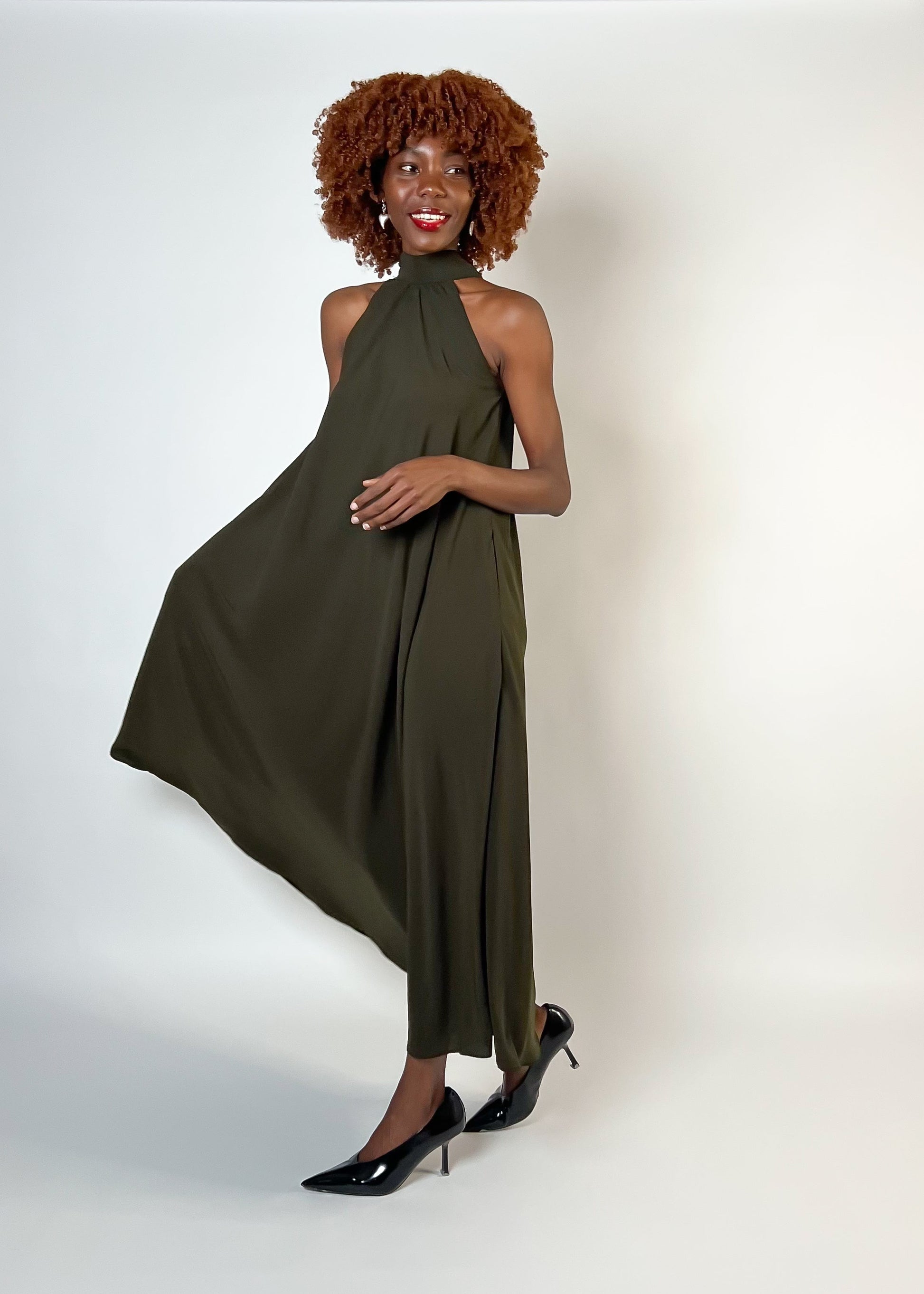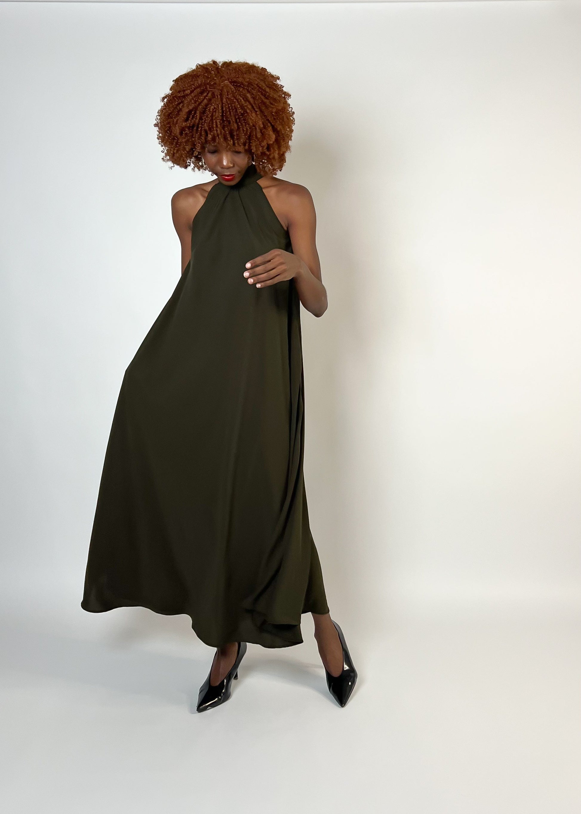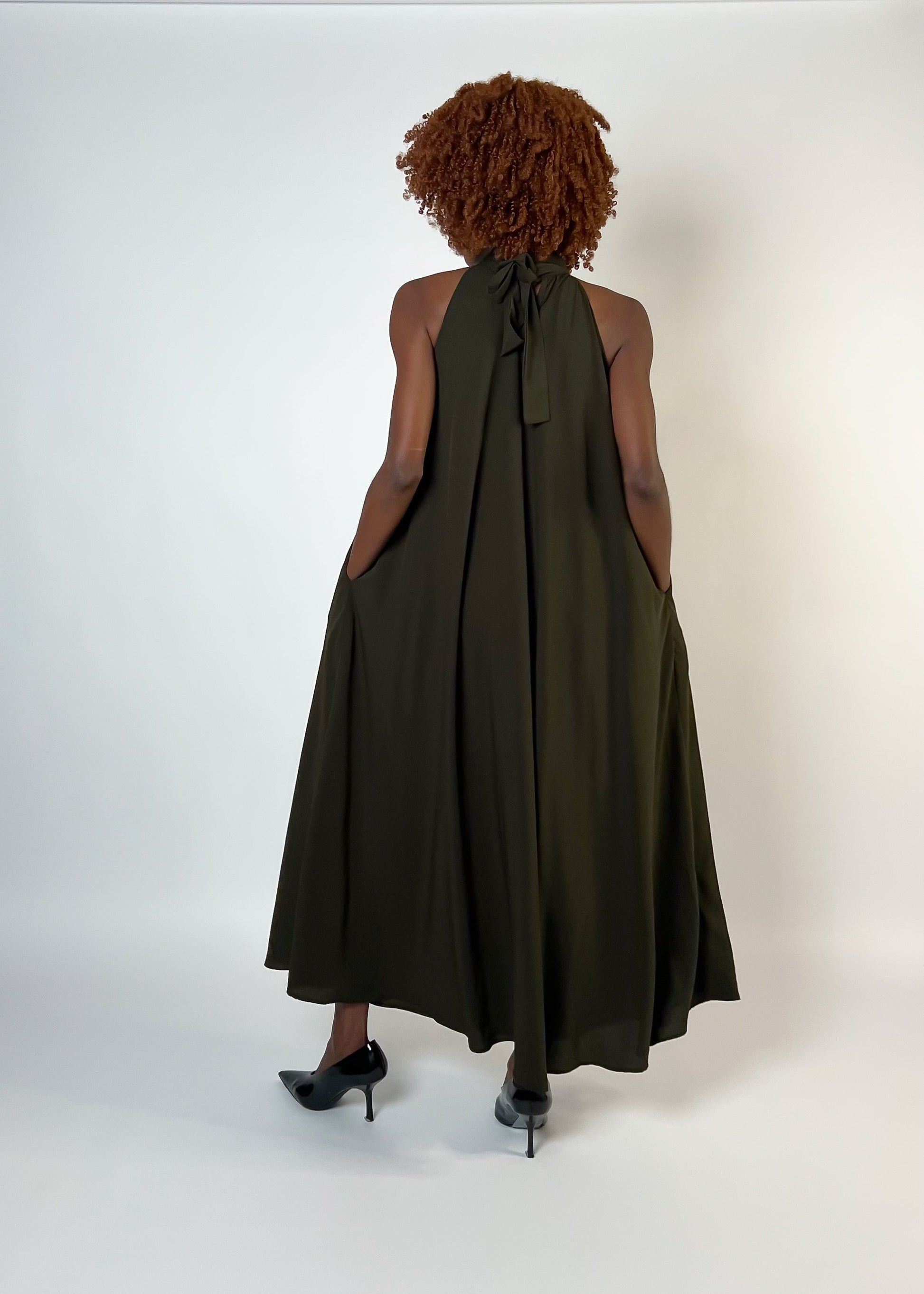 This Gaudy dress brings effortless elegance to your wardrobe. Made from mid weight fabric, it features a flowing halter silhouette that moves with elegance. Adjustable straps at the back of the neck ensure a perfect fit, while hidden side pockets add a touch of practicality. Ideal for everything from special occasions to stylish everyday wear, this dress is a versatile statement piece.