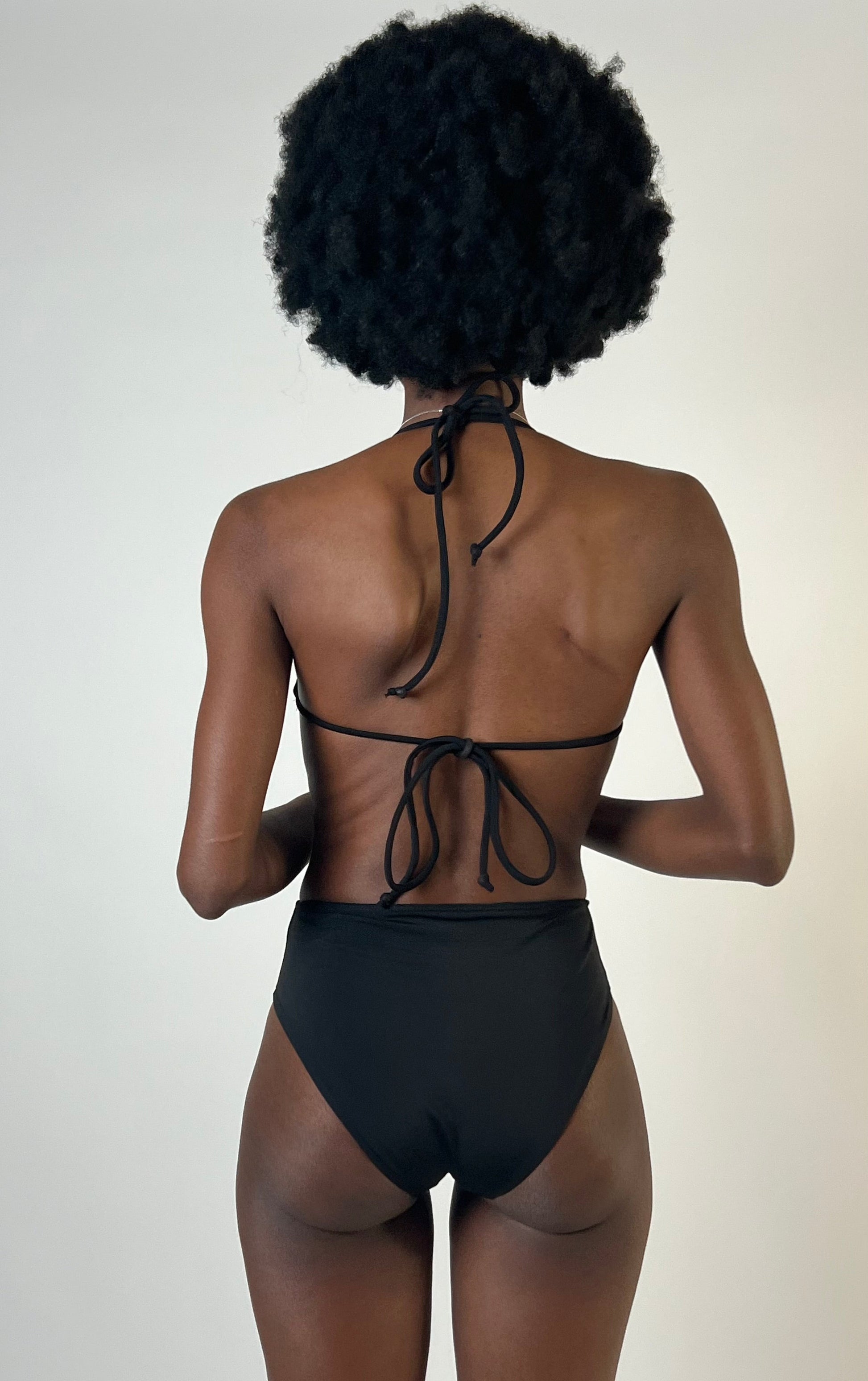 The black beauty swimsuit is the ultimate show-stopper that you need. Designed with a high-waist cut, a unique cut with a topping of jewelry at the front to enhance your shape. Black beauty is a one-piece swimsuit that is certain to break some hearts and leave you wanting more. This swimsuit is ready for a tropical vacay or a night in the town with your favorite bottoms.